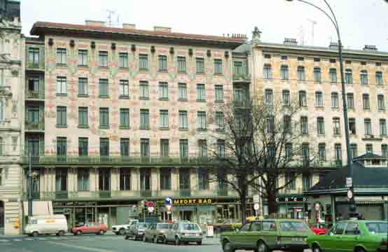 Esta edificio, llamado de los Medallones, es uno de los ejemplos más hermosos de arquitectura social de Viena. En él, construido en 1898, Otto Wagner alcanzó casi la perfección. El equilibrio, la armonía de formas y de volúmenes de la esquina son una muestra de genio.