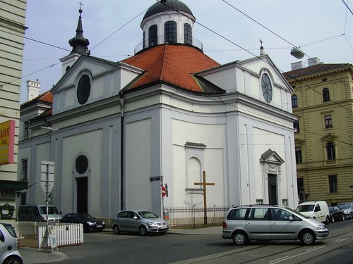 La estatua quedó enmarcada entre dos edificios de Heinrich Ferstel: el palacio Ludwig Viktor (número 1), construido para el hermano menor del emperador y actualmente local de ensayos del Burgtheater, y el palacio industiral Wertheim (número 17), inventor de las cajas fuerts de seguridad. La plaza está dividida en dos por el tráfico de la calle Lothringer Strasse.